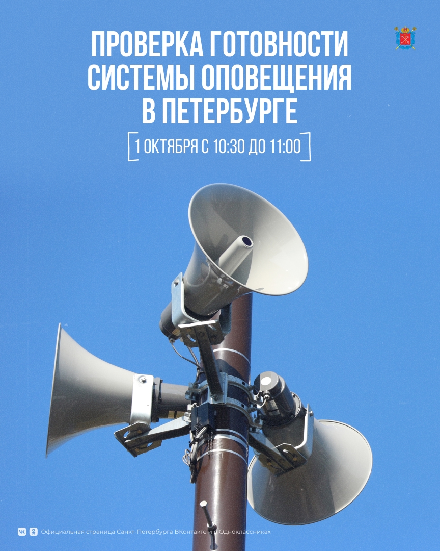 Местная Администрация / Профилактика терроризма и экстремизма, ГО и ЧС / 30.09.2025 1 октября с 10:30 до 11:00 в Петербурге проверят региональную систему оповещения населения.